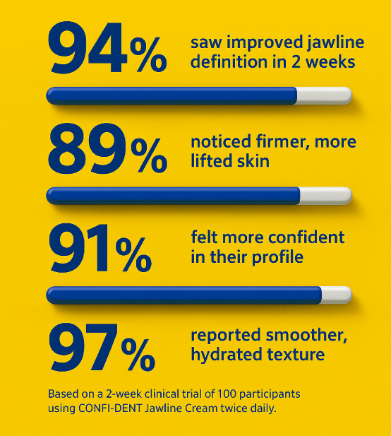 Most users notice visible improvements within 2-4 weeks of consistent use. Clinical studies show 94% of users saw a sharper, more defined jawline within 28 days. For optimal results, apply twice daily as directed.